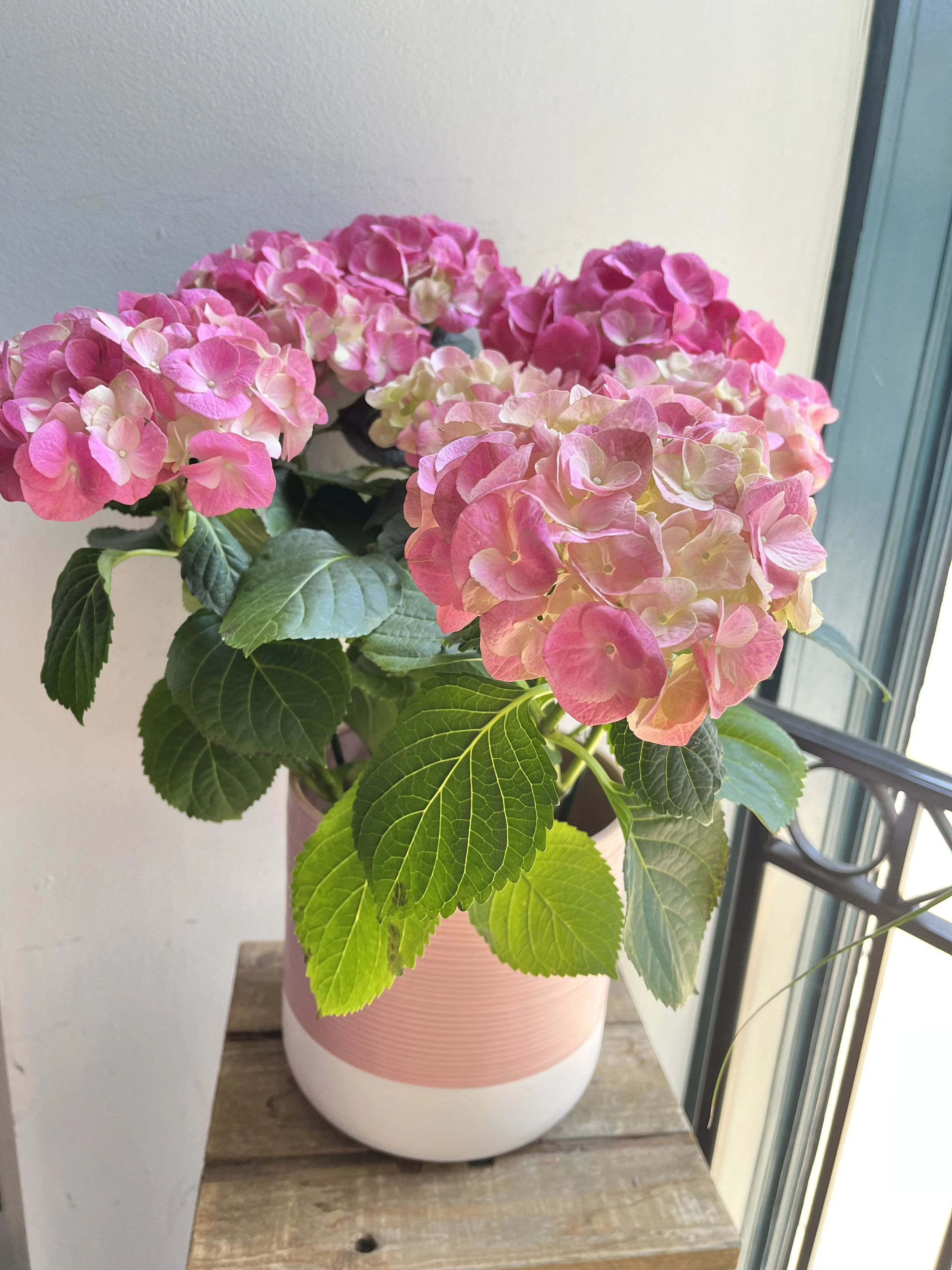 Pink Hydrangea Plant in Ceramic Container